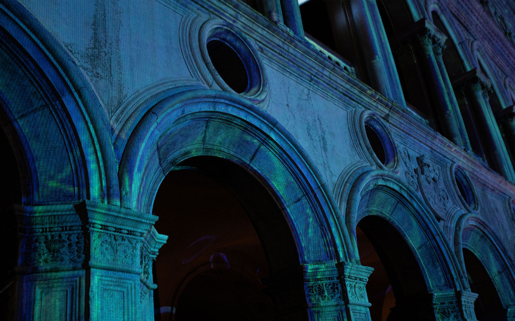 - We adapted cutting-edge artistic work to the imposing facade of Palazzo Ducale in Venice, transforming the historic building into a living canvas where the boundaries between art and architecture blur.